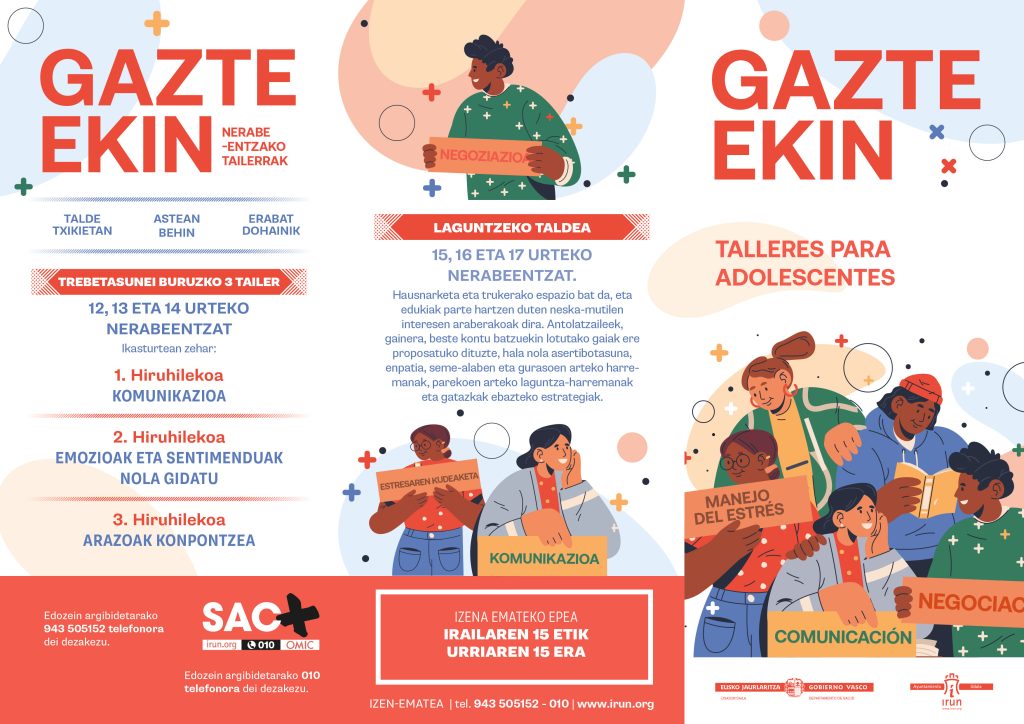 Era berean, gogorarazi nahi dizuegu egun hauetan zabalik egongo dela Gazteekin programan izena emateko epea, 12 eta 17 urte bitarteko nerabeentzako trebetasunen eta laguntza taldeen tailerrean.